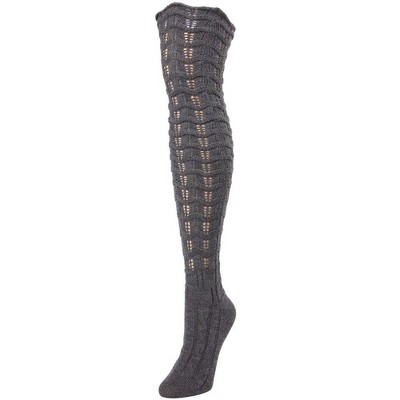 Memoi Women's Dot and Braid Wool Blend Over The Knee Sock