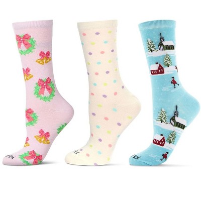 MeMoi 3 Pair Women's Winter-Themed Novelty Crew Socks