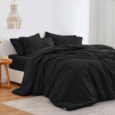 Seersucker Black Queen Comforter Set, 7 - Piece Lightweight Bedding with Comforter, Sheets, Pillowcases and Shams