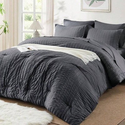 Nestl Bed in a Bag, 7pc Comforter Set Seersucker Design, Modern Comforter Sets with Sheets, Bed in a Bag Bed Set