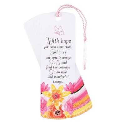 Dicksons with Hope for Each Tomorrow, Pink/Yellow 6 x 2 Inch Laminated Cardstock Tassel Bookmark; Pack of 12