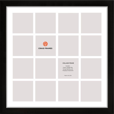 Craig Frames 18x18 Inch Collage Picture Frame, Gallery Black, Contemporary, Acrylic Facing and Sawtooth Hanger Included, (16) 4x4 Instagram Photos