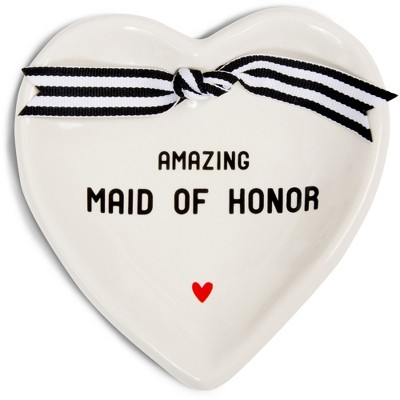 Pavilion Gift Company - Maid of Honor - 4.5" x 4.5" Heart-Shaped Keepsake Dish - Decorative Trays and Platters