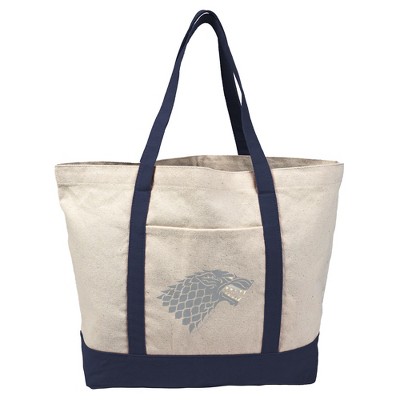 Game of Thrones Stark Sigil Canvas Tote Bag With External Pocket, Reusable Shoulder Bag for Shopping, School, Beach, Black