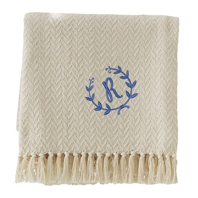 Personalization Mall Floral Wreath Embroidered Afghan Throw Blanket