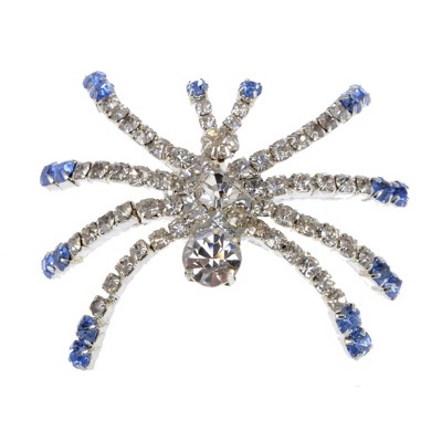 Alilang Women's Crystal Spider Brooch Pin with Blue Gemstone Accents