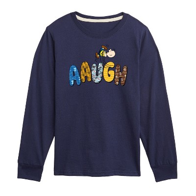 Boys' - Peanuts - Aaugh Pattern Charlie Brown Long Sleeve Graphic T-Shirt