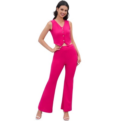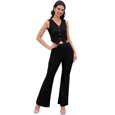 Two Pieces For Women Casual Linen 2 Piece Suits Waistcoat Custom Linen Vest With Button High Waist Pant