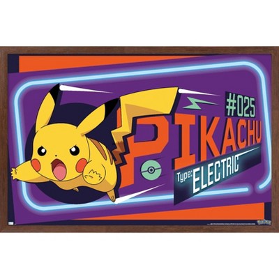 Trends International Pokémon - Neon Pikachu Framed Wall Poster Prints