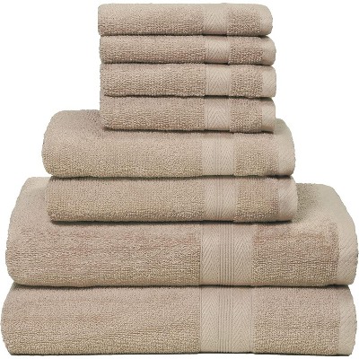 8 Piece Towel Set 2 Bath Towels 27x54, 2 Hand Towels 16x28 and 4 Washcloths 13x13 - Ultra Soft Highly Absorbent Machine Tan
