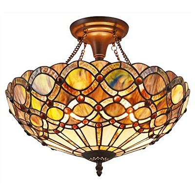 Homestock Heidi Tiffany-Style 2 Light Semi-Flush Ceiling Fixture 16" Shade