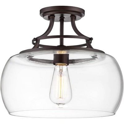 Franklin Iron Works Charleston Industrial Modern Farmhouse Ceiling Light Semi Flush Mount Fixture 13 1/2" Wide Bronze LED Clear Glass for Bedroom Home