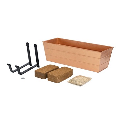 ACHLA Designs 22" Wide Rectangular Galvanized Steel Planter Box with Clamp-On Brackets, Copper Plated: Wrought Iron, No Assembly Required