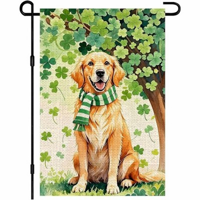 Lomsoe St Patricks Day Dog Garden Flag Green Shamrock Clover Flower Yard Flag Welcome Flag St. Patrick’s Day Decor Single Side 12x18Inch