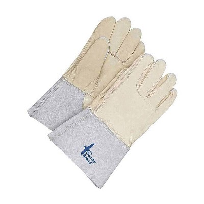 Bdg Cowhide Welder with 5 in Cuff, Gauntlet Cuff, Straight Thumb, Gray/Tan, L, 1 PR