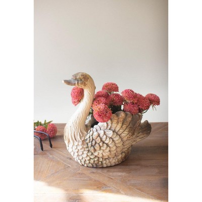 Faux Concrete Swan Planter – Garden Inspired Accent – 15" Tall Indoor Planter by Kalalou