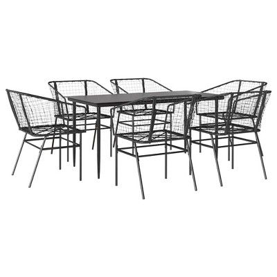 vidaXL 7 Piece Patio Dining Set - Black Poly Rattan Outdoor Ensemble with Tempered Glass Table - Garden/Backyard/Patio Furniture with 6 Chairs