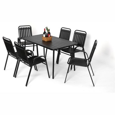 vidaXL Patio Dining Set Table and Chair Garden Outdoor Furniture Black Textilene