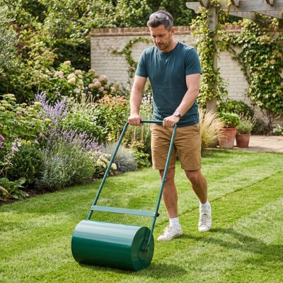 23 Inch Lawn Roller, 13 Gallon Capacity Water/Sand Fillable Sod Roller, Heavy Duty Steel Push & Tow Behind Yard Roller for Garden Grass Care
