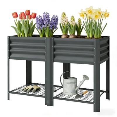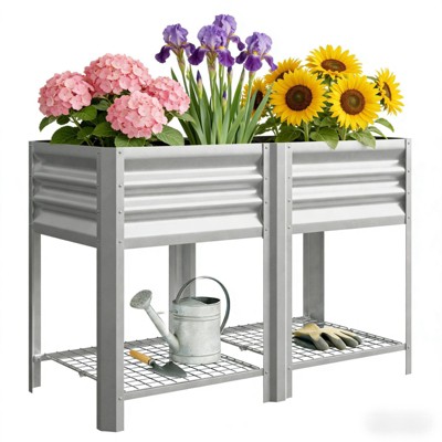 NAYSAYE Outdoor Elevated Planter Box with Storage Shelf and Ergonomic Height for Comfortable Raised Garden Bed,47.2"*21.7"*31.5"