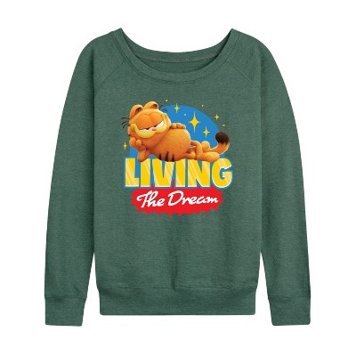 Women's - Garfield - Living The Dream Lightweight French Terry Wide Neck Long Sleeve Graphic Shirt