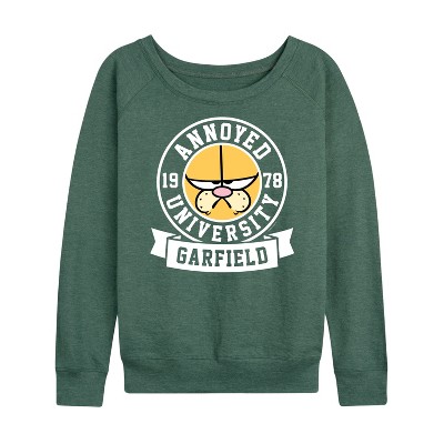 Women's - Garfield - Annoyed University Lightweight French Terry Wide Neck Long Sleeve Graphic Shirt