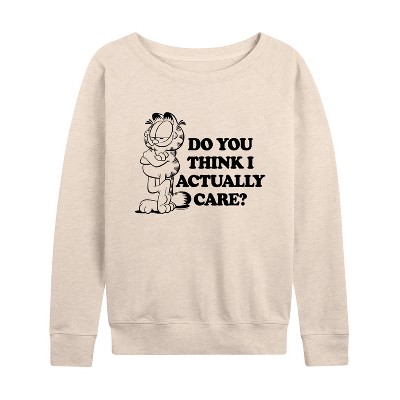 Women's - Garfield - Do You Think I Actually Care Lightweight French Terry Wide Neck Long Sleeve Graphic Shirt