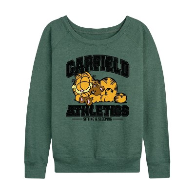 Women's - Garfield - Sleeping Athletics Lightweight French Terry Wide Neck Long Sleeve Graphic Shirt