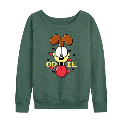 Women's - Garfield - Pixel Odie Lightweight French Terry Wide Neck Long Sleeve Graphic Shirt