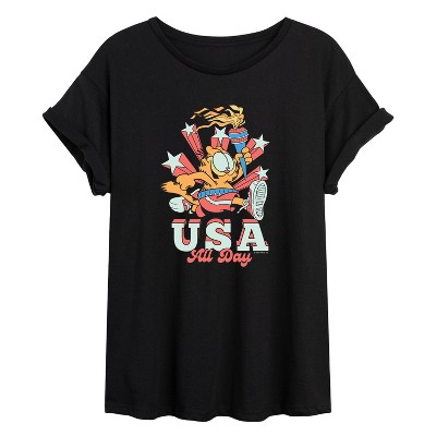 Women's - Garfield - USA All Day Oversized Graphic T-Shirt
