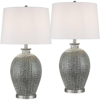 26.5" Glass Olivia Table Lamp Silver with Linen Shade - JONATHAN Y: Nightstand & Large Mercury Art Glass