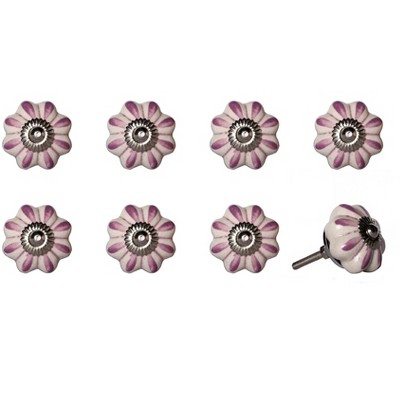 HomeRoots Set of Eight Purple And Gray Ceramic And Metal Drawer Pull Knobs