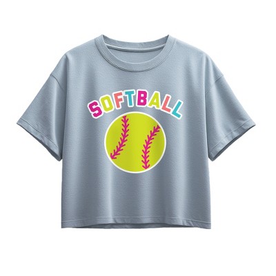 Girls' - Instant Message - Colorful Softball Short Sleeve Boxy Graphic T-Shirt