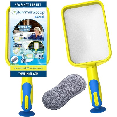 The Skimmie Scoop – Patented Handheld Fine Mesh Skimmer for Spa, Hot Tub, Cold Plunge & Small Pools – Lightweight, Durable, Suction Cup (Yellow)