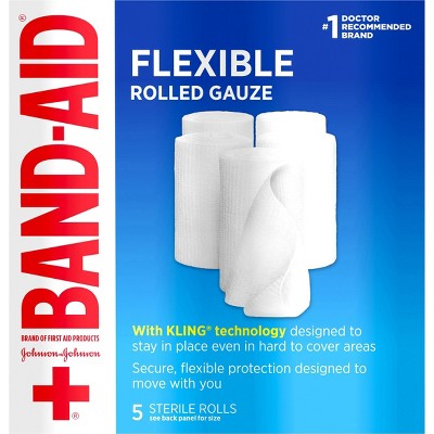 Band Aid Brand Flexible Rolled Medical Gauze, 3 in x 2.1 yd, 5 ct