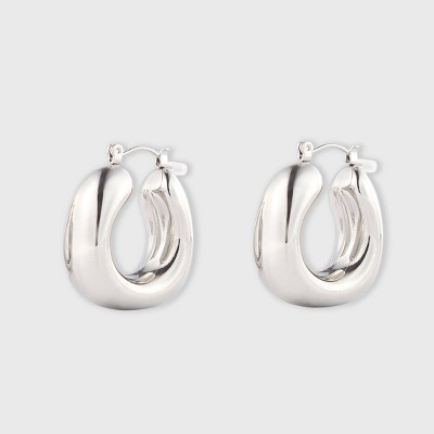 Chunky Square Water Resistant Metallic Hoop Earrings - A New Day™ Silver