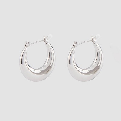 Soft Flat Water Resistant Metallic Hoop Earrings - A New Day™ Silver