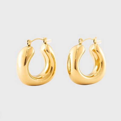 Chunky Water Resistant Square Metallic Hoop Earrings - A New Day™ Gold