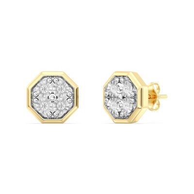 14K Gold Plated Huggie Earrings with Cubic Zirconia Cuff & Stud Set.