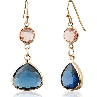 SmallRig Sapphire Topaz Earrings for Women, Handmade Blue & Pink Gold Dangle