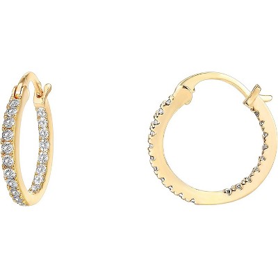 14K Gold Plated 925 Sterling Silver Post Pave Cubic Zirconia Huggie Hoop Earrings for Women