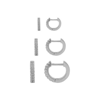 Adornia 14k Gold Plated Hoop, Solitaire and Ball Stud Set
