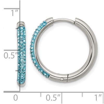 Black Bow Jewelry Stainless Steel CZ Cross Hinged Round Hoop Earrings, 6 x 12mm