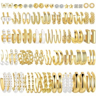 42-Pair Gold Hoop Earrings Set: Chunky, Pearl, Twisted & Small/Big Styles | Hypoallergenic Multipack for Women, Party