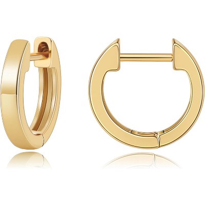 SmallRig 925 Sterling Silver Gold Plated Hoop Earrings, 12mm Lightweight Hypoallergenic Huggie