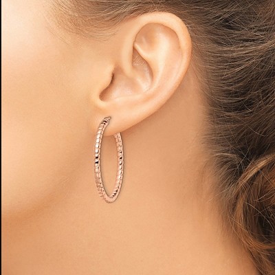 Chisel Stainless Steel Polished Rose IP-plated 1.6mm Hinged Hoop Earrings