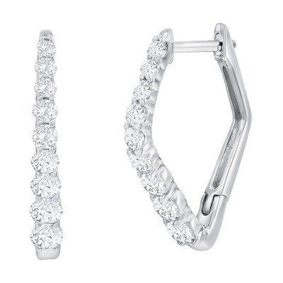 Bella Silver Sterling Silver, Graduating CZ Diamond-Shaped Hoop Earrings - Silver