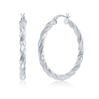 Bella Silver Sterling Silver Polished & Satin 40mm Twisted Hoops - Silver