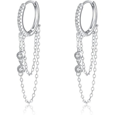 4-Pair Silver Plated Huggie Hoop Earrings - Bow, CZ Heart & Star Dangles, Hypoallergenic for Sensitive Ears (Ages 3+)