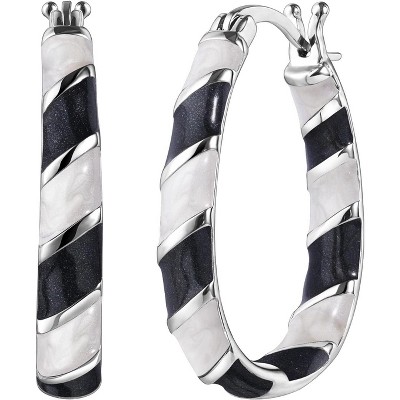 Black Bow Jewelry 3mm x 26mm (1 Inch) Polished 14k White Gold Oval Tube Hoop Earrings